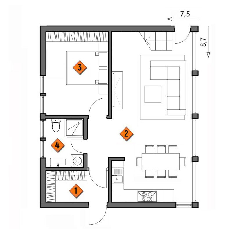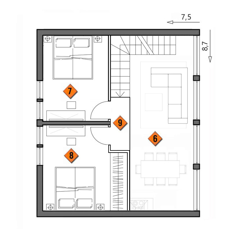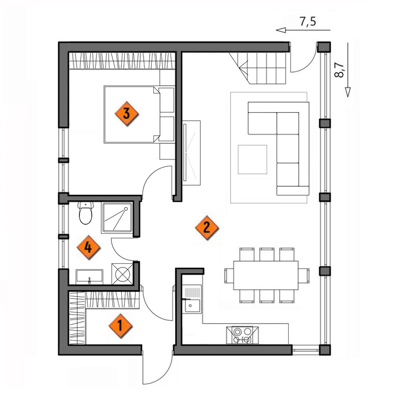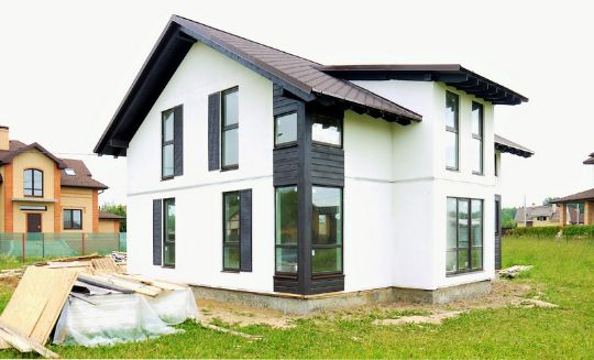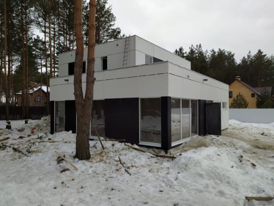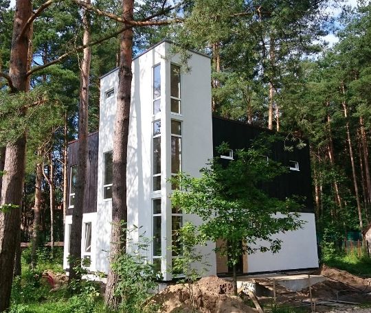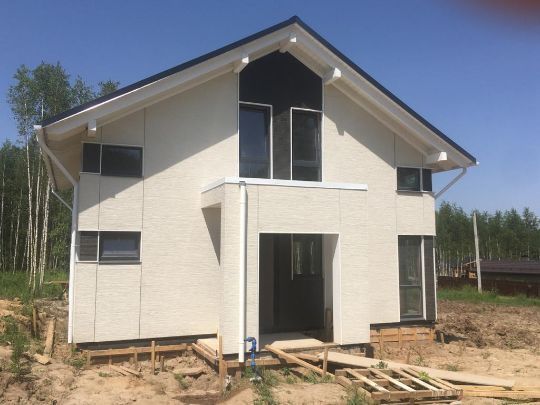 Основа древесина хвойных пород АБ- класса, камерной сушки 2 типа (влажность 10-13%), натуральный утеплитель из базальта, включая внутреннюю стену под чистовую отделку и японские фасадные панели KMEW (вариативно: замена на аналог).
